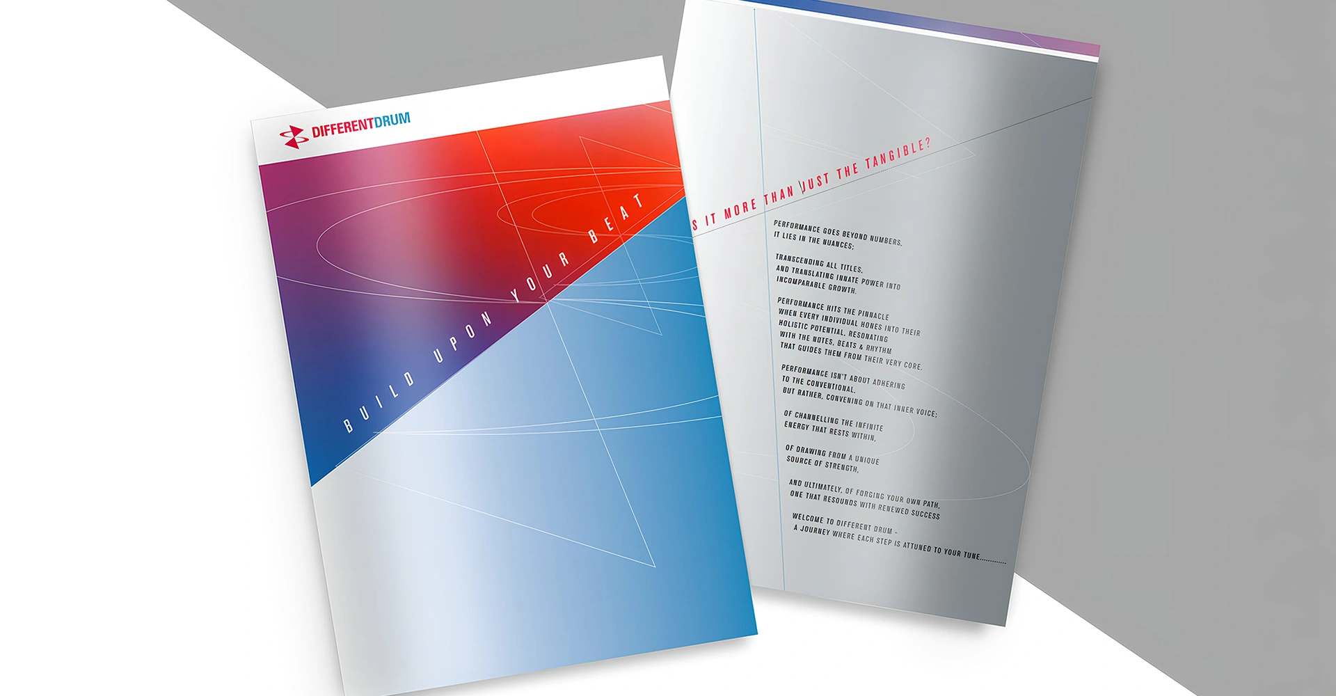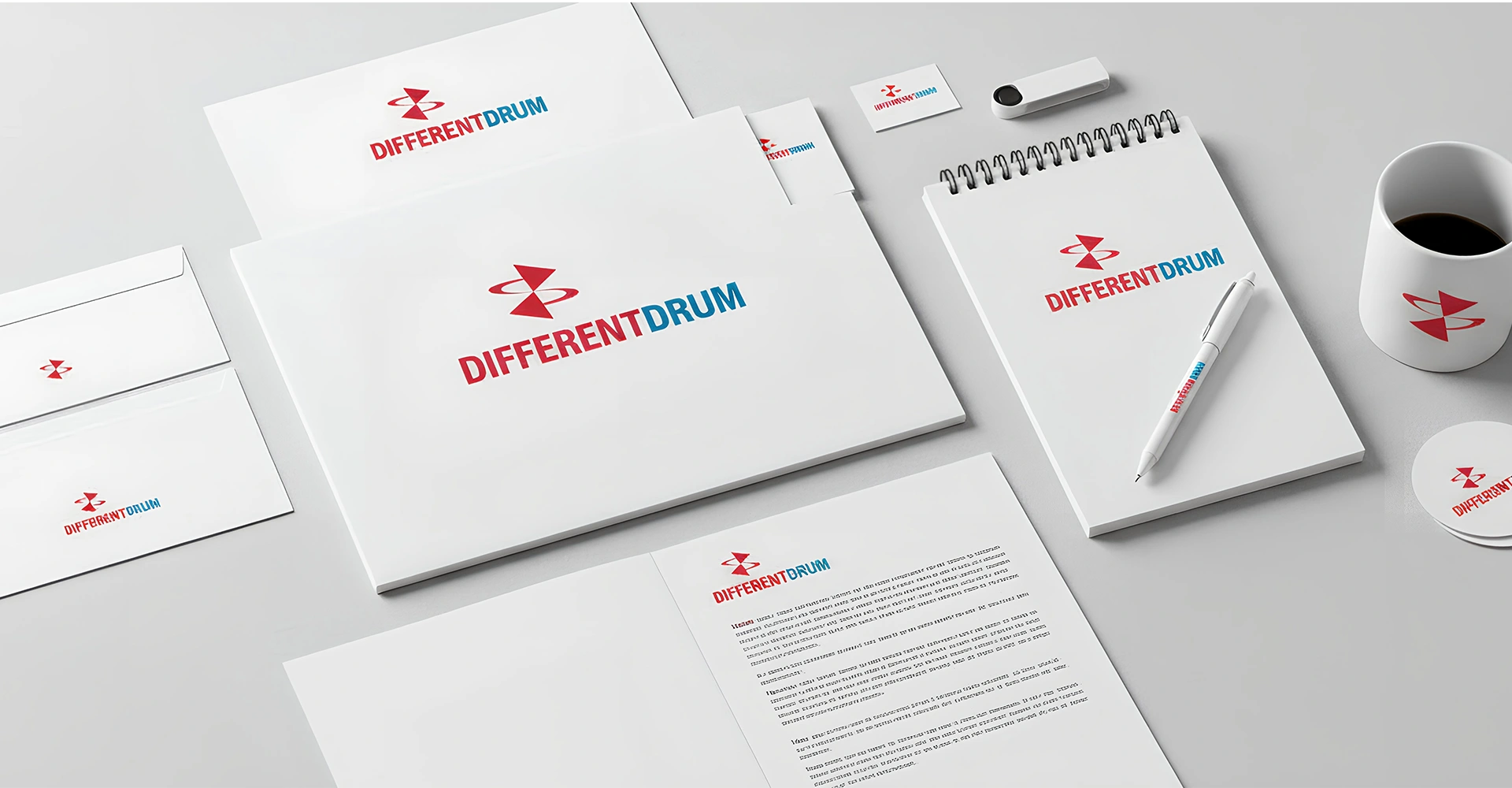 Different Drums is a forward-looking consultancy that provides unconventional, lateral thinking to help organisations prepare for the future and address emerging scenarios. Its approach challenges traditional frameworks, enabling companies to rethink strategy, innovation, and growth in a complex environment. The name reflects a commitment to moving beyond the predictable, encouraging organisations to “march to a different drum” in their pursuit of transformation. The visual identity expresses this philosophy through the logo, colour palette, typography, and font system, all of which convey dynamism and modern thinking. These elements represent a shift in perspective and reinforce the brand’s role as a catalyst for progressive change and future-ready leadership.